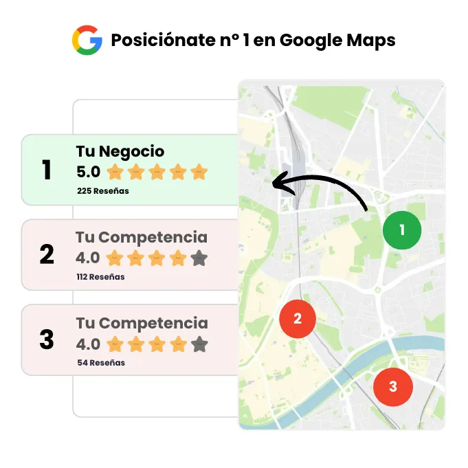 Nuestras herramientas automatizadas te aseguran destacar frente a la competencia, transformando a tus clientes satisfechos en embajadores reales que impulsan tu posicionamiento en Google.